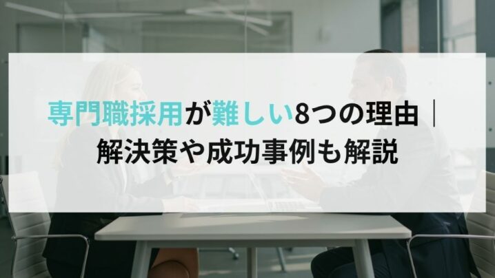 👉この記事のポイント 専門職採用の課題 選考辞退・内定辞退・早期退職が多発するため、効率的で魅力的な選考プロセスを設計する必要があります。 採用を難しくする外部要因 専門スキル…