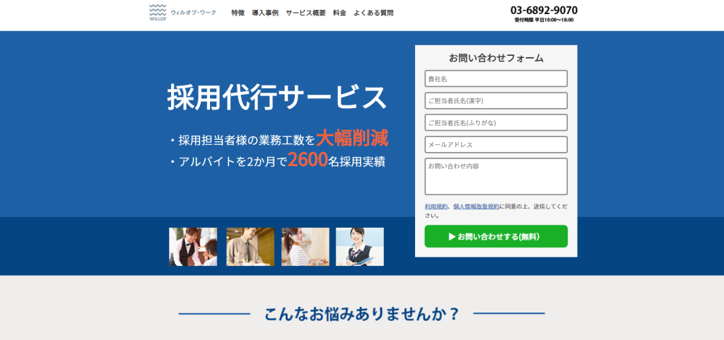 - 業界トップクラス10,000社以上の導入実績があり、新卒、中途、アルバイトなど幅広い採用代行サービスを展開